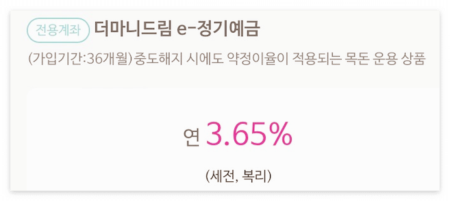 ■ 금리 및 가입기간 : 3.65% (36개월 만기)